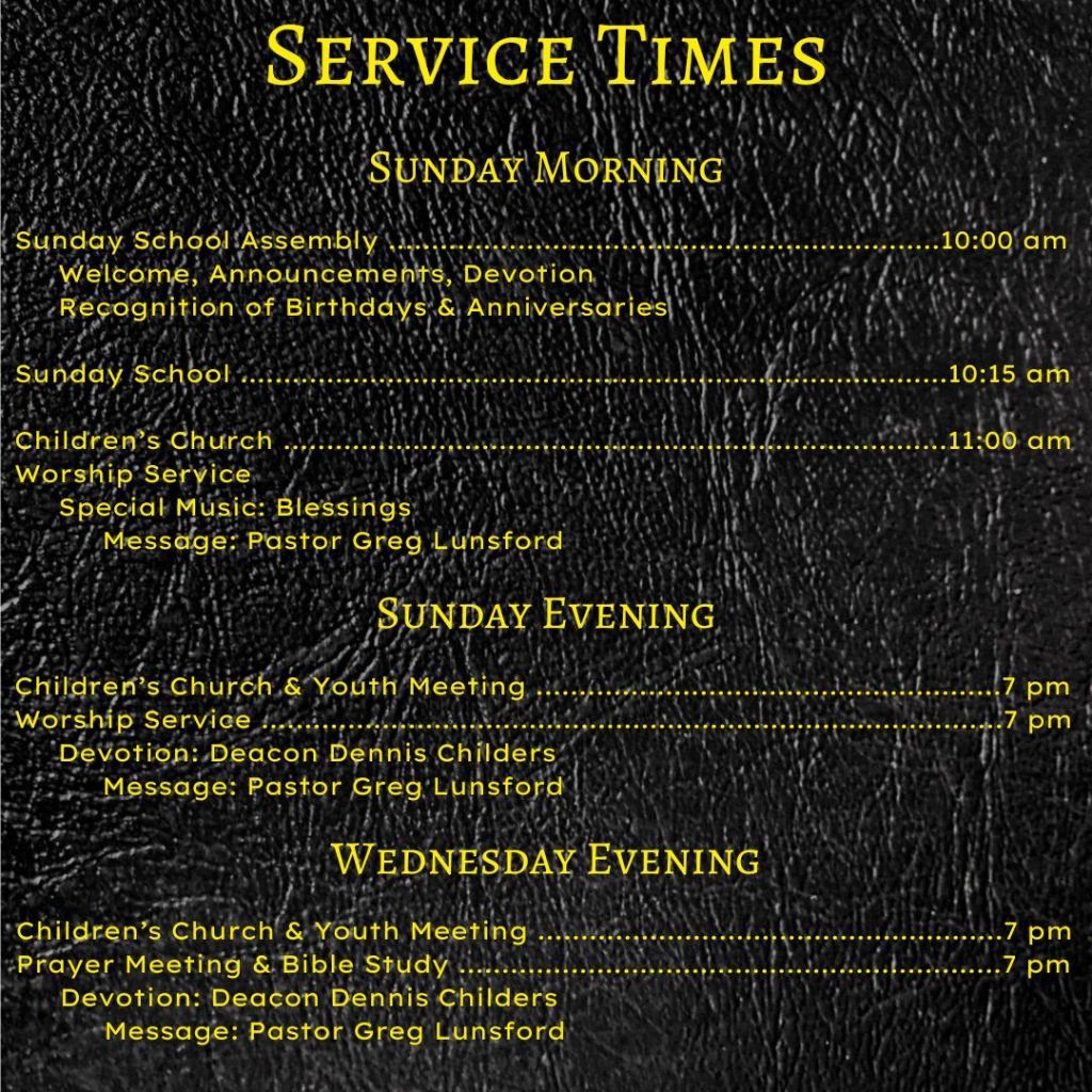 Thurs., Sept. 21, 5:30 pm – Guyandotte Baptist Association Annual Meeting at Camp Ona. Hot dogs and desserts at 5:30 pm, business session at 6:30 pm. Important business to be discussed. Our delegates are Pastor Greg, Vera Miller, Patty Morrison, Jo Ross, Jeanne Lunsford, and Jim Ross is an alternate. Everyone is invited.