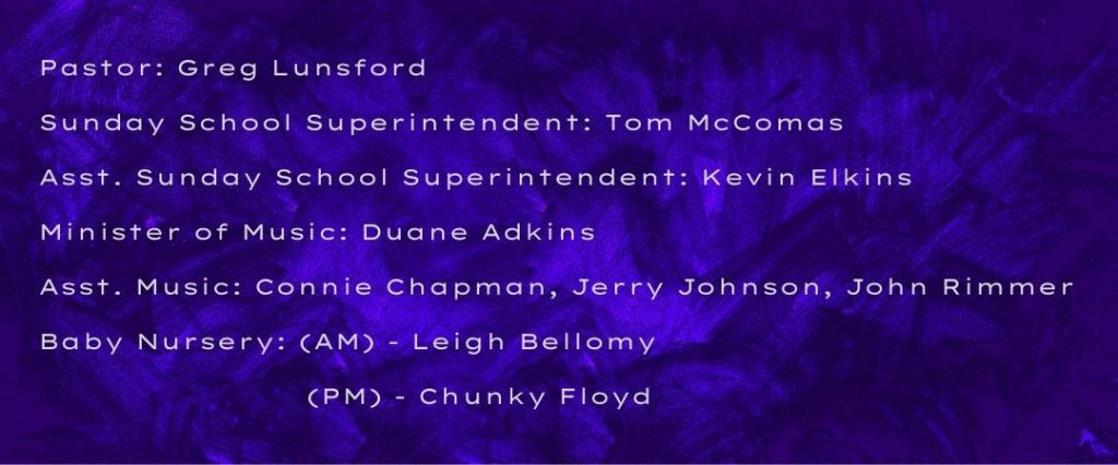 The Wedding of Leigh Blankenship and John Hagley will be held in the church sanctuary, on Sat., Oct. 28, at 4:30 pm. The reception will follow at The Guyandotte Baptist Church Camp (Camp Ona). Please sign the sheet in the foyer if you plan to attend.