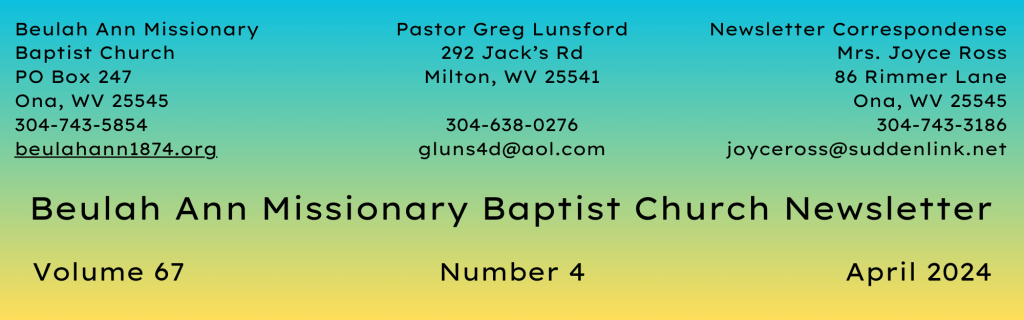 On December 26, 2024, Beulah Ann will be 150 years old! The Anniversary Committee has been making plans and we want to give a heads up, especially to those of you have moved away, because we would love to have you visit “home” and worship with us on any or all of these special events. We will have many events starting in June when we are 149½! We will list here the ones that have been firmed up.
