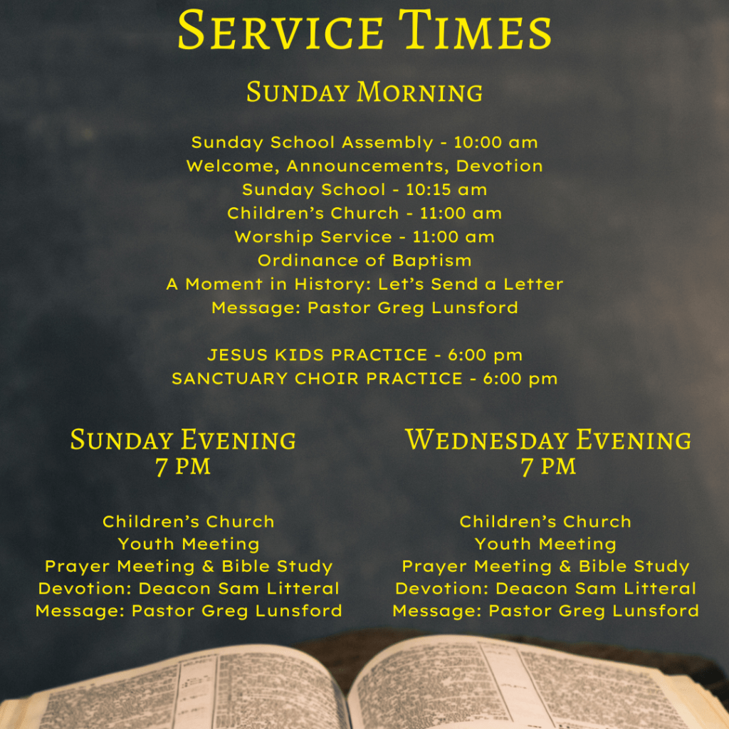 Sun.-Fri., Oct. 13-18, 7 pm – Fall Revival with Pastor Jeff Fetty.