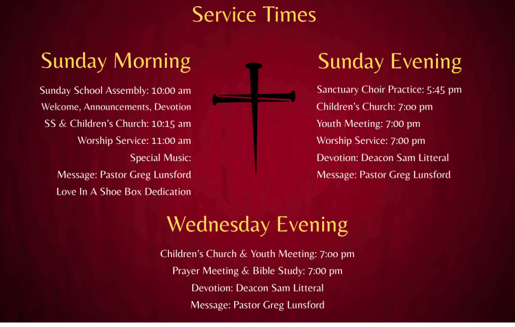 The Children’s Ministry will be having their Christmas Play Practice on Sundays and Wednesday at 7 pm until the play on December 14. (Thanks for all the trees, we have enough now.)